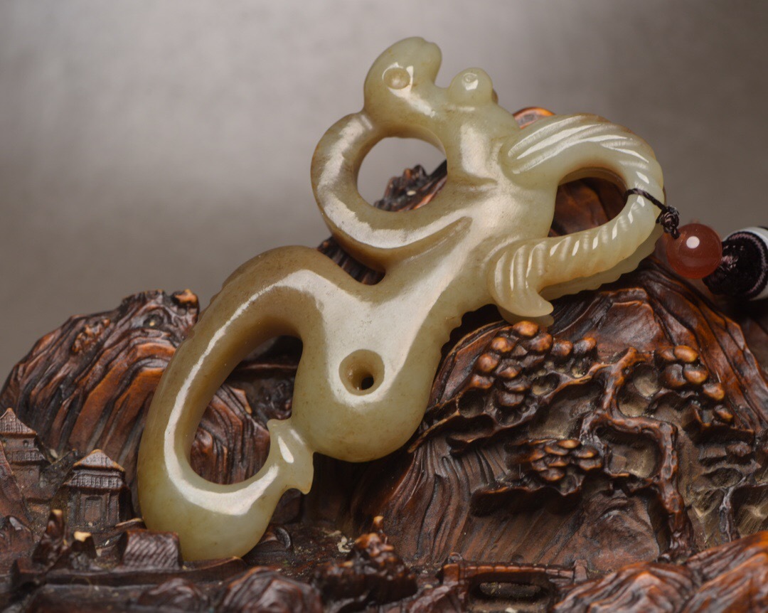 - 【超珍館蔵】和田玉製 細密彫 豬龍 置物 賞物 古賞物 古董品 古美術品 時代物 旧家蔵出 稀少珍蔵品