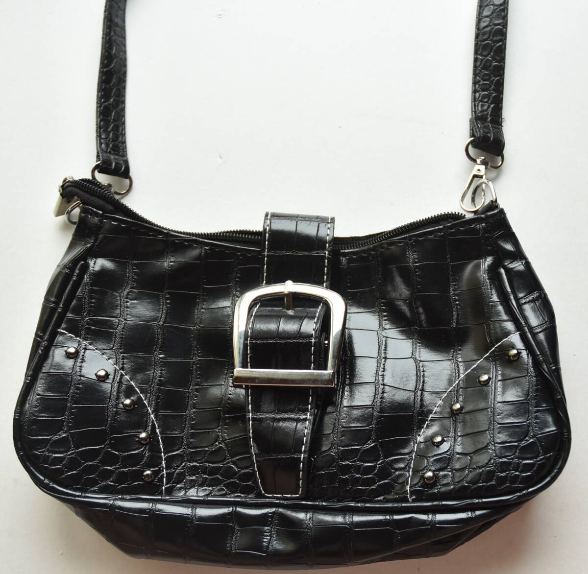 - クロコダイル 光沢 フェイク ワニ革 ハンドバッグ 黒 ブラック 美品 フェイク鰐革 フェイクわに革 レディースバッグ