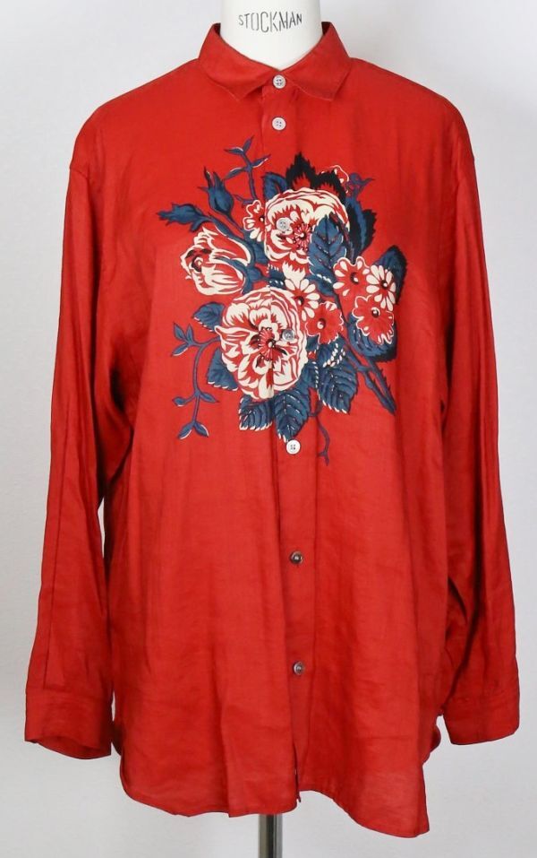 - 90S Y's linen rayon flower shirt ワイズ ヨウジヤマモト レーヨン リネン 花 長袖 シャツ b9493