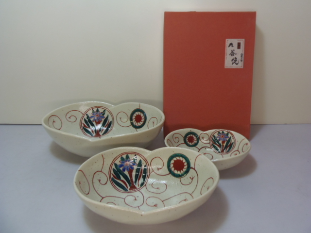 ●2 s893 【九谷焼 九谷暁堂】 三ツ組鉢 唐草