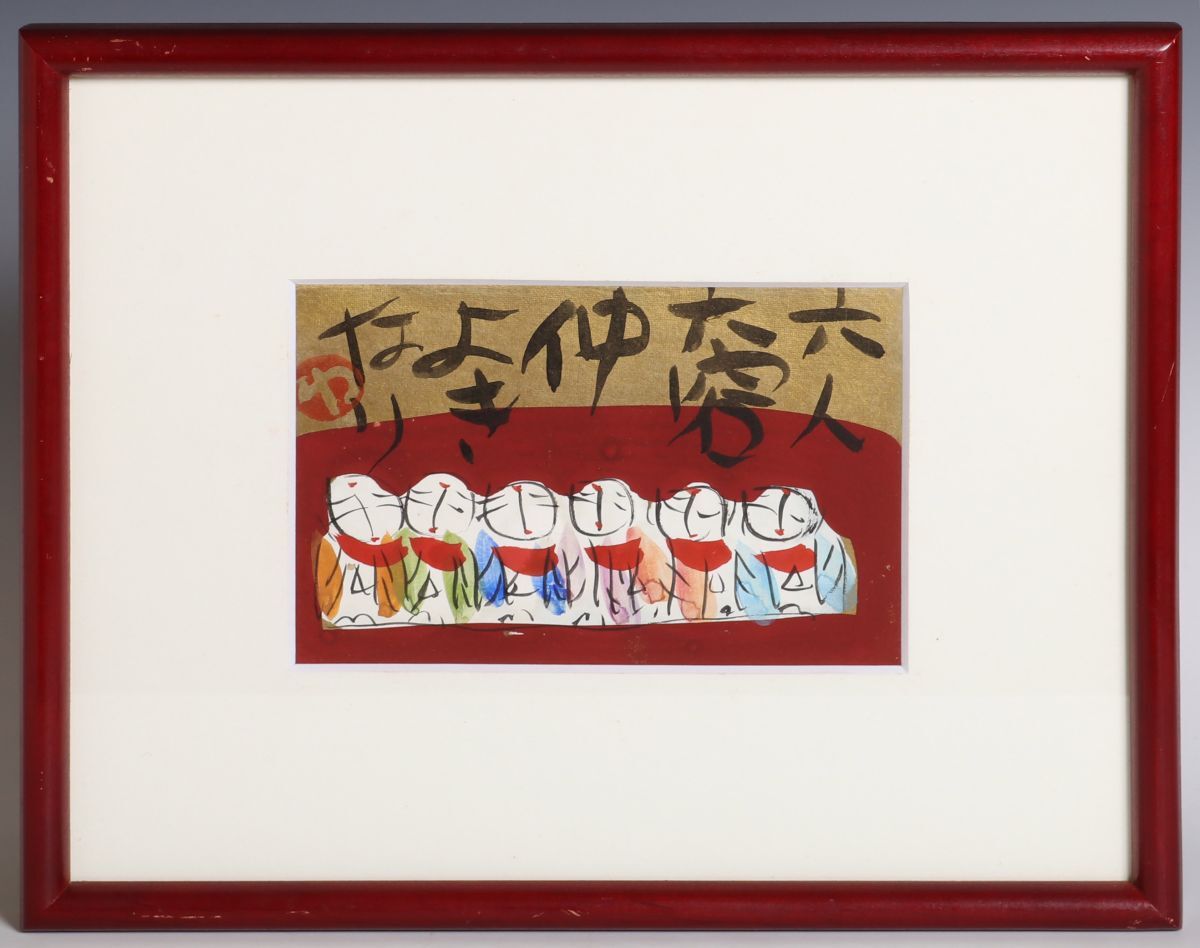 - 9369 渡辺俊明 「六地蔵 六人六容仲よきなり」 水彩 額装 真作 静岡県 浜松芸術祭典芸術大賞