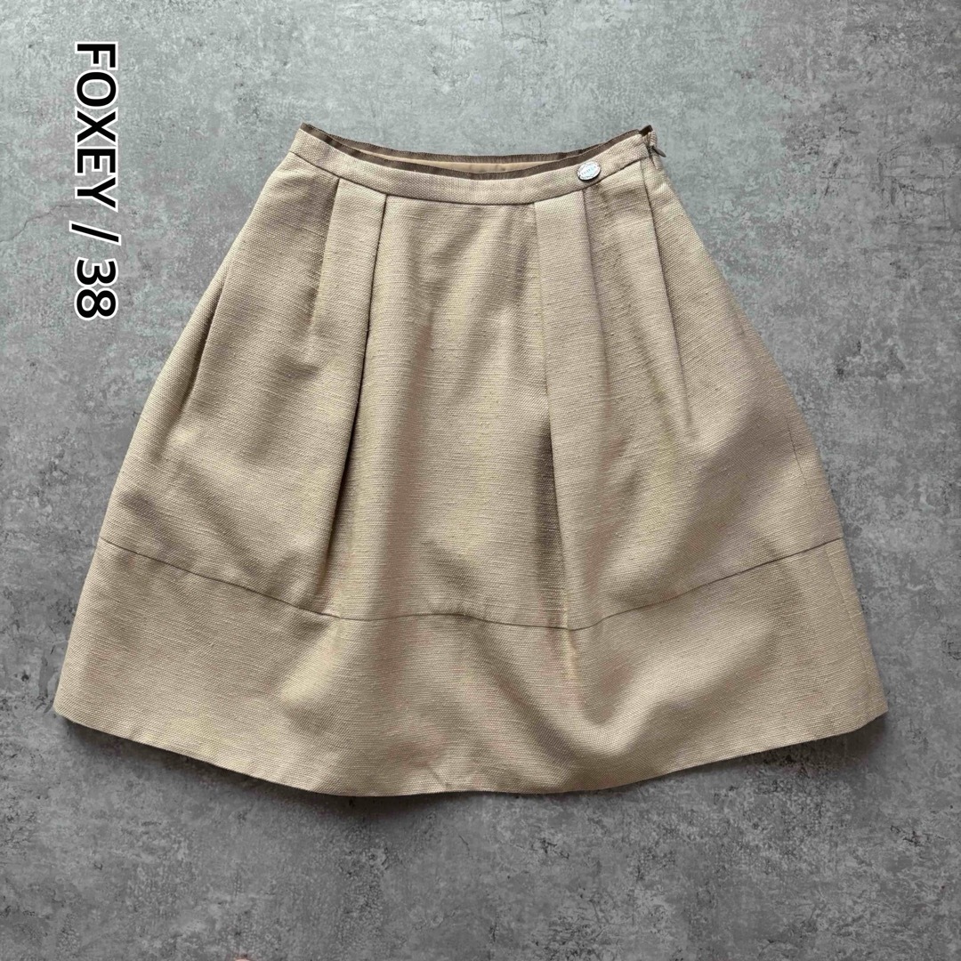 - *フォクシー ベルフラワー ピュアシルク タックフレア ひざ丈スカート Aライン ベージュ系 38サイズ 日本製 FOXEY