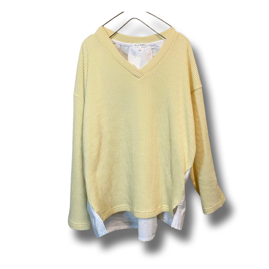 - 新品 3Can4on ニット・背中ブロード レモンイエロー Vネック Lサイズ