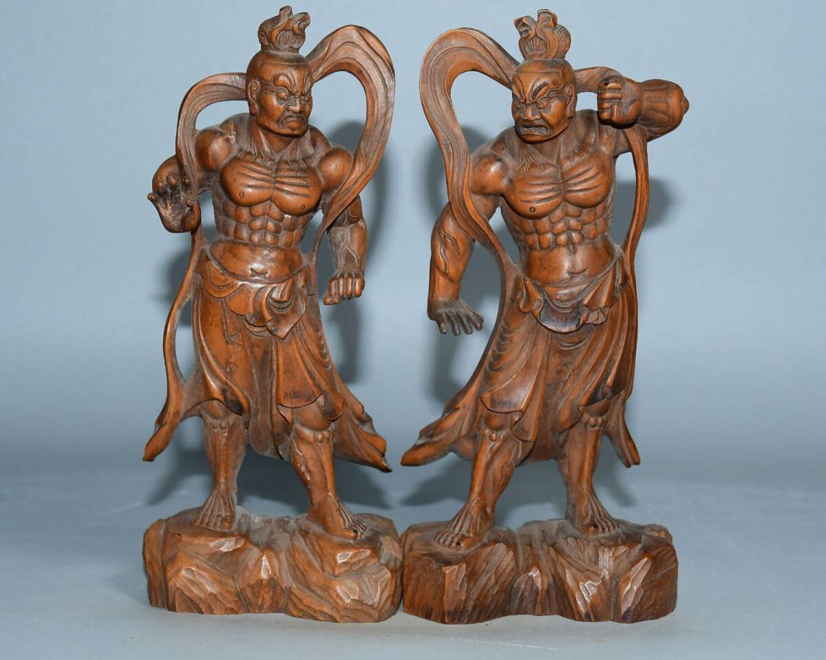 - 『館蔵珍品 黄楊木製 細密彫 哈二將像 仏像 宗教 仏教古美術 供養品』稀少珍蔵品 古賞物 貴重物品 収蔵品 中国古美術 時代物 古董品