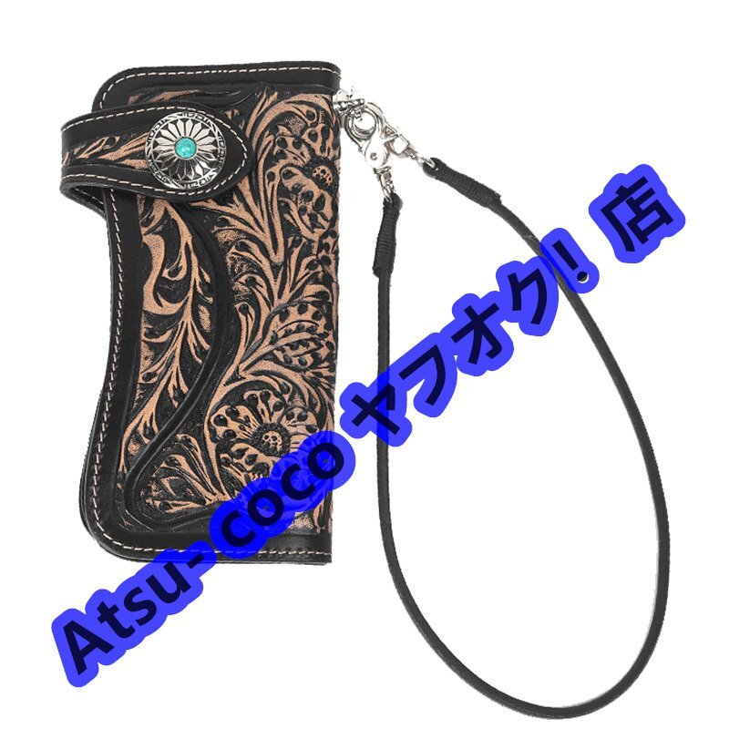 - 新入荷 長財布ハンドメイド 本革 高級牛革使用 サドルレザー バイカーズ ライダース ウォレット チェーン紐付き 茶色 ブラウン