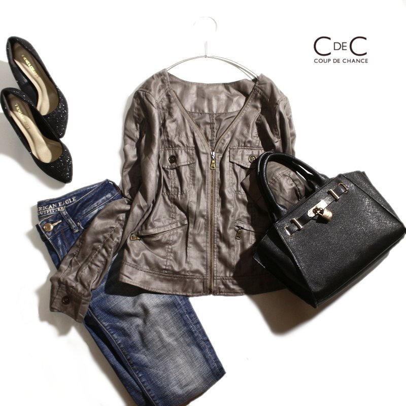 > 美品 クードシャンス COUP DE CHANCE 株) ワールド 春 夏 ロゴジッパー 艶 2way 半袖 ~ 七分袖 サマージャケット 9号 38 グレージュ 上品