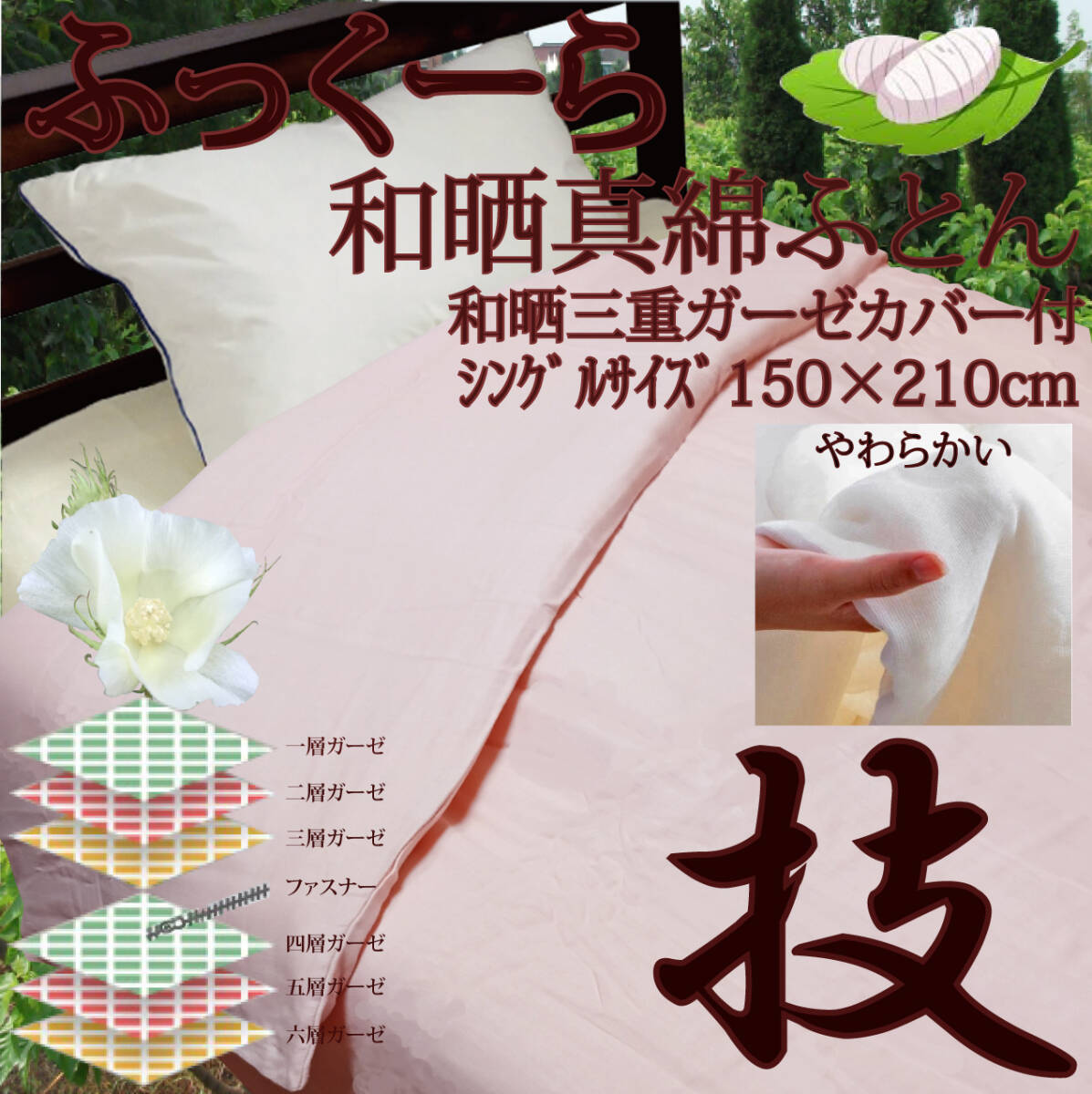 - 和晒ガーゼ真綿ふとん 増量 シングル ピンク カバー付