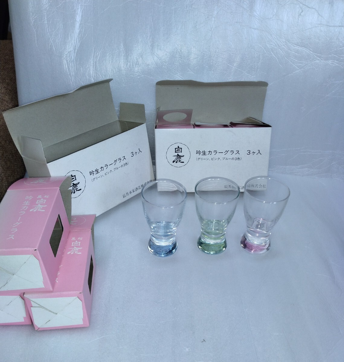 - K146【未使用/保管品】 白鹿 吟生カラーグラス 3ケ入 2セット ノベルティ 非売品