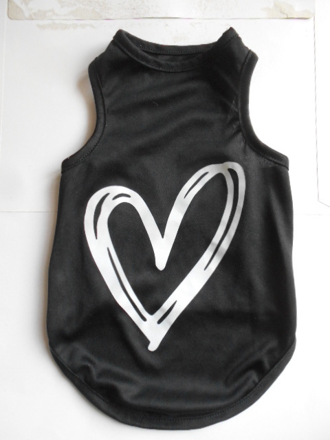 > 小型犬 可愛い タンクトップ Tシャツ L ハート ブラック 春夏 抜け毛対策