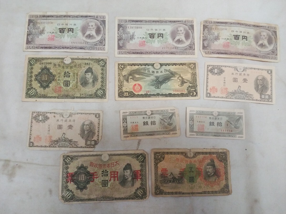 - レターパックR/日本 旧紙幣 古紙幣【 拾銭・壹圓・五圓・拾圓・百円・軍用手票 など 】11枚セット コレクション