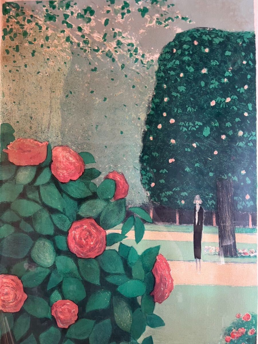 - 真作 希少エディション E.A カシニョール 【薔薇の茂み】 リトグラフ 直筆サイン Jean-Pierre Cassigneul 版画 バラ