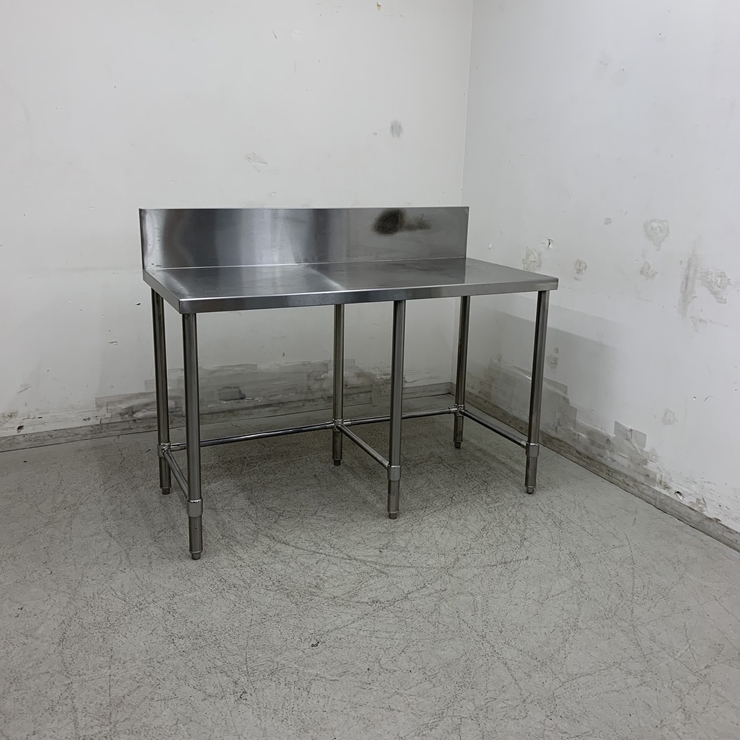 - 【中古】 A08737 作業台 バックガード付き 3方枠 ステンレス 作業テーブル 6本脚 W1260x D600x H800(+200)mm【厨房用】【家財おまかせ便】