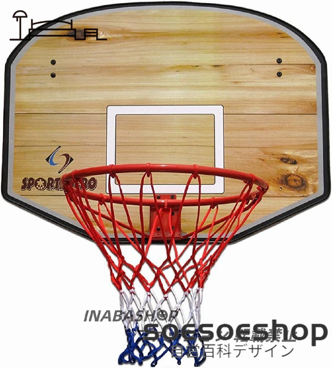 - バスケットゴール 木製のバックボードと18インチのスチールリムを備えた壁掛けバスケットボールフープ -