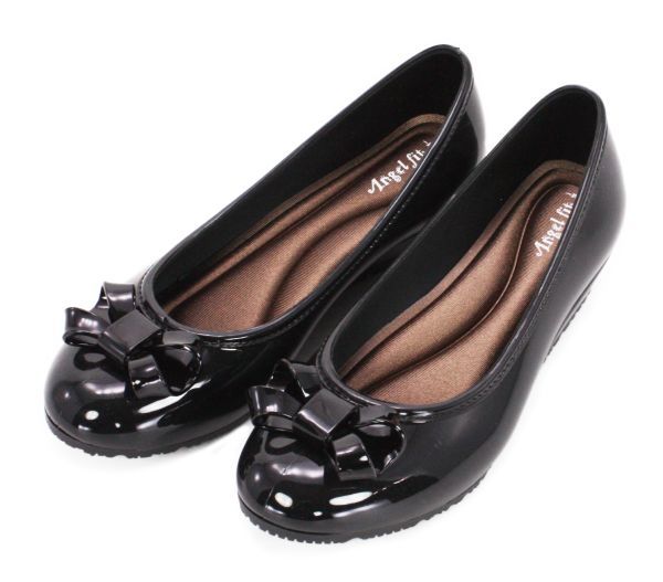 > B品 レディース レインシューズ パンプス Lサイズ (23.5-24.0cm) ブラック ウエッジヒール リボン 防水 婦人 af_18011 ②