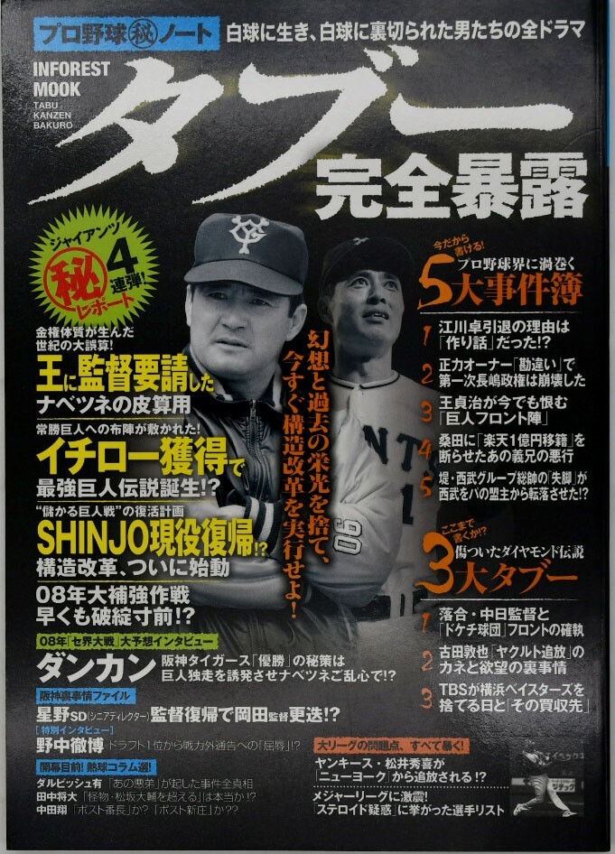 - プロ野球ノート タブー完全暴露 白球に生き、白球に裏切られた男たちの全ドラマ 長嶋茂雄 ほか 平成20年2008年発行