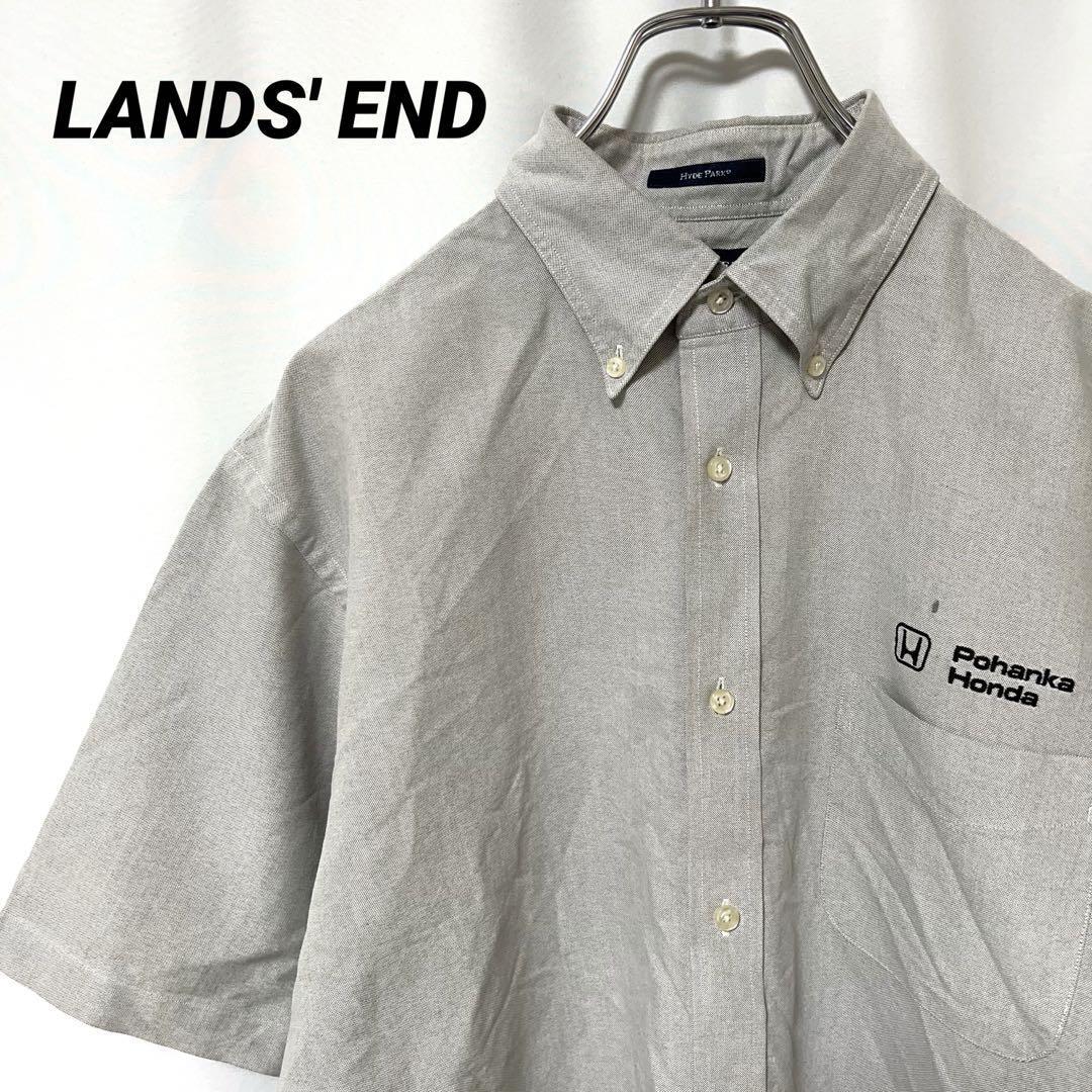 - N-4491 LANDS' END ランズエンド アメリカ古着 ワークシャツ 半袖 企業ロゴ 刺繍 HONDA ホンダ L グレー