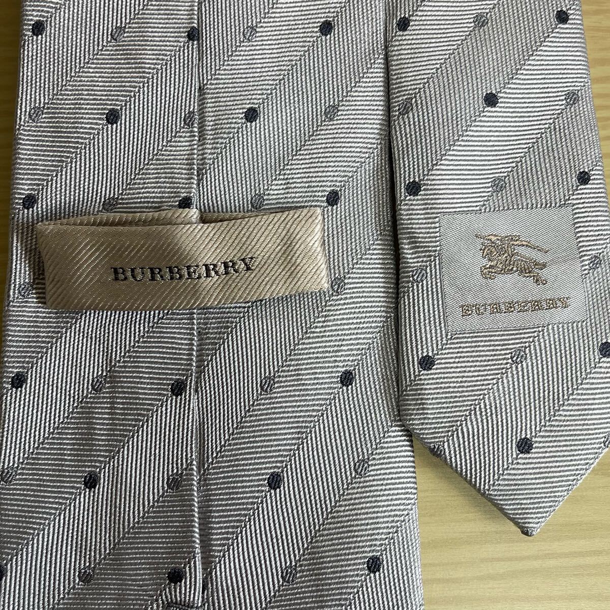- BURBERRY(バーバリー)シルバーミクロ丸点ストライプのネクタイ