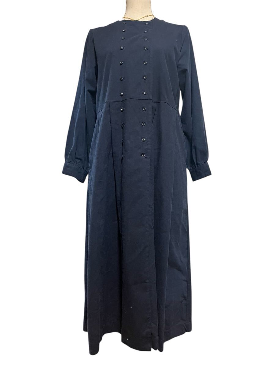 - ヘブンリー リネン混 ダブルボタン ロングワンピース F