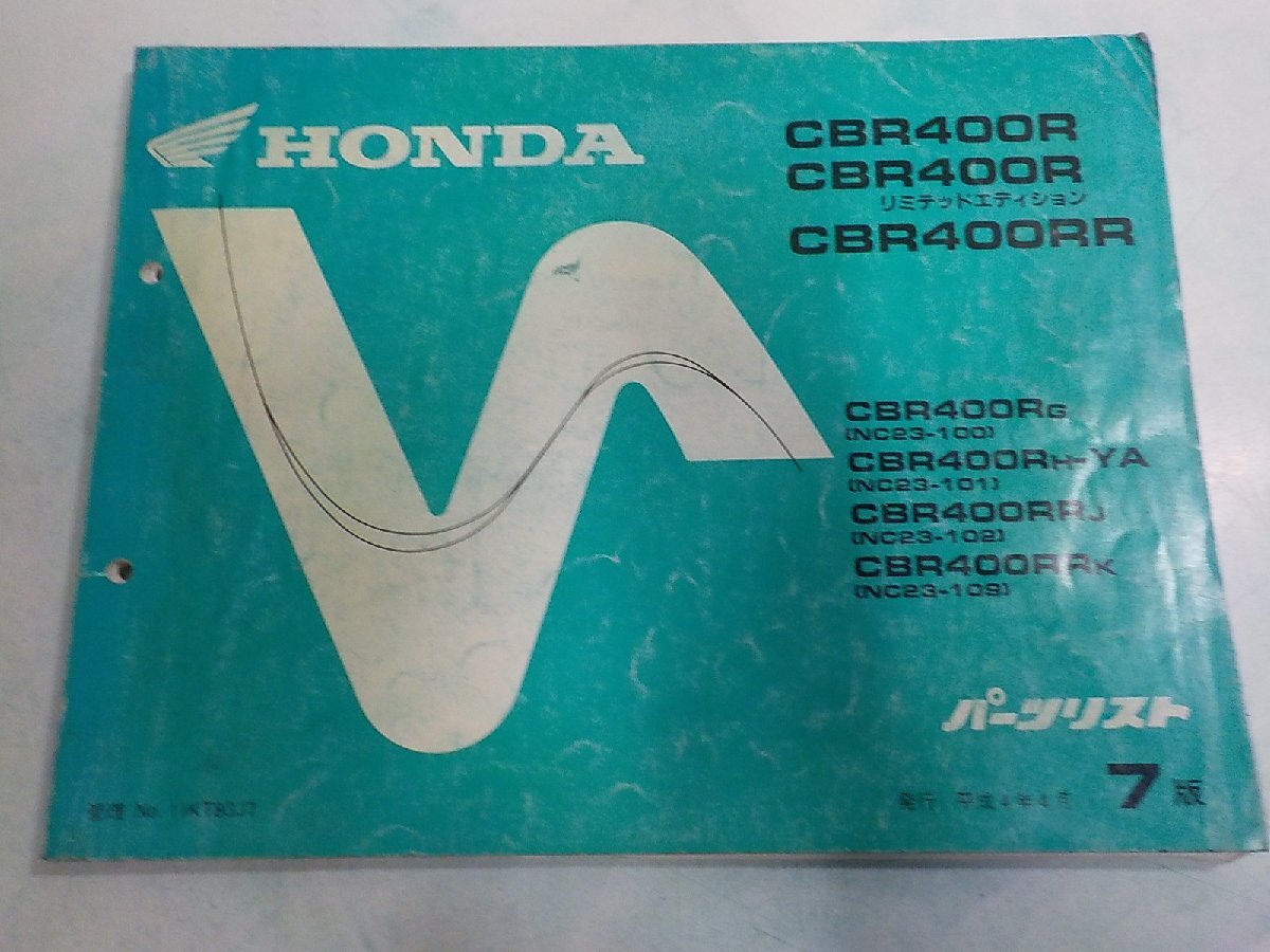 > h7240◆HONDA ホンダ パーツカタログ CBR400R/リミテッドエディション CBR400RR CBR400/RG/RH-YA/RRJ/RRK (NC23-100/101/102/109) ☆