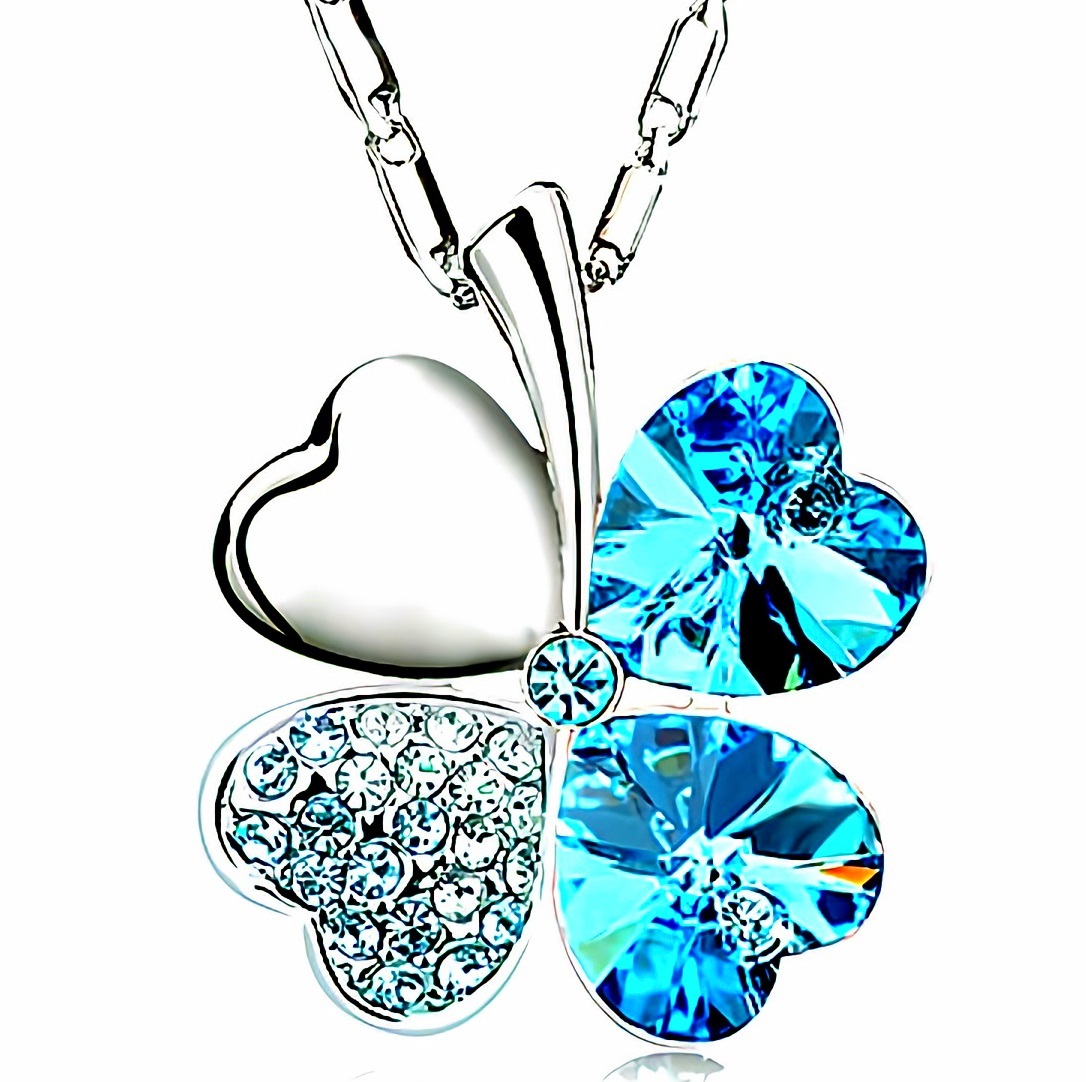 > 新品★送料無料★幸運の四葉ブルートパーズダイヤ プラチナ仕上925シルバーネックレス誕生日プレゼント旅行連休夏海盆ギフト国内発送