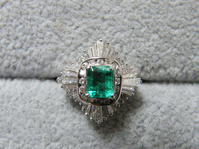 - 70.. エメラルド 0.91ct ダイヤモンド刻印無し 約1ct pt900 約7.5号