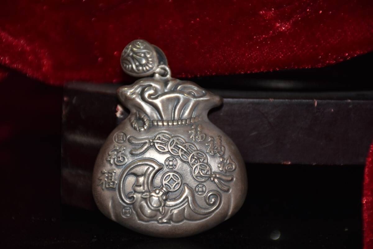 - 【仁】『銀製・福在眼前紋ペンダント・置物・賞物』極細工 古董品 中国古玩 古美術 古美味 時代物 旧家蔵出