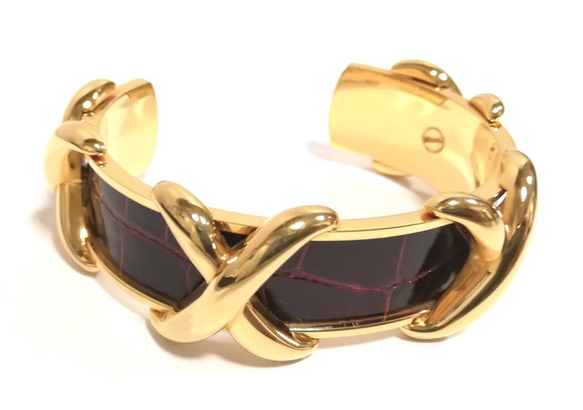 - 【質屋 尾張屋商店 東京】 エルメス HERMES カフ バングル ブレスレット クロコ ワインレッド