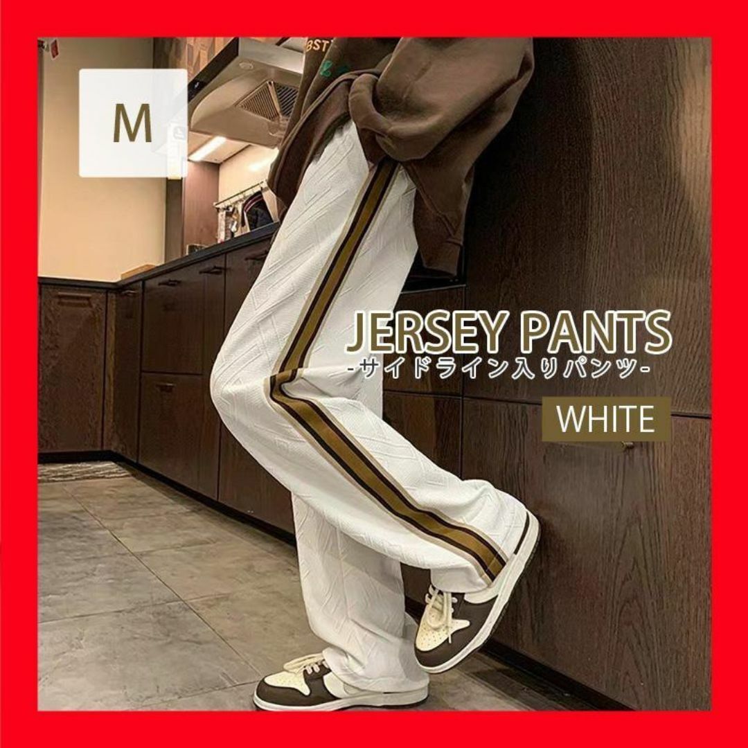 - M サイドライン ジャージ ボトムス ストリート パンツ ダンス 韓国風 メンズ エンボス加工 ホワイト ライン ユニセックス