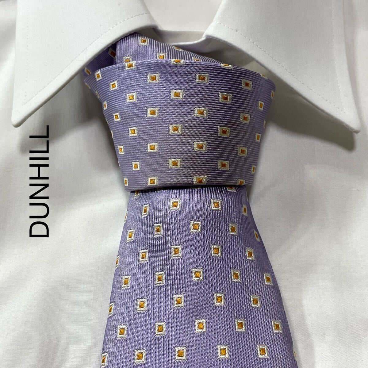 - DUNHILL ダンヒル パターン柄 ジャガード シルク ネクタイ 英国製 パープル TG1868