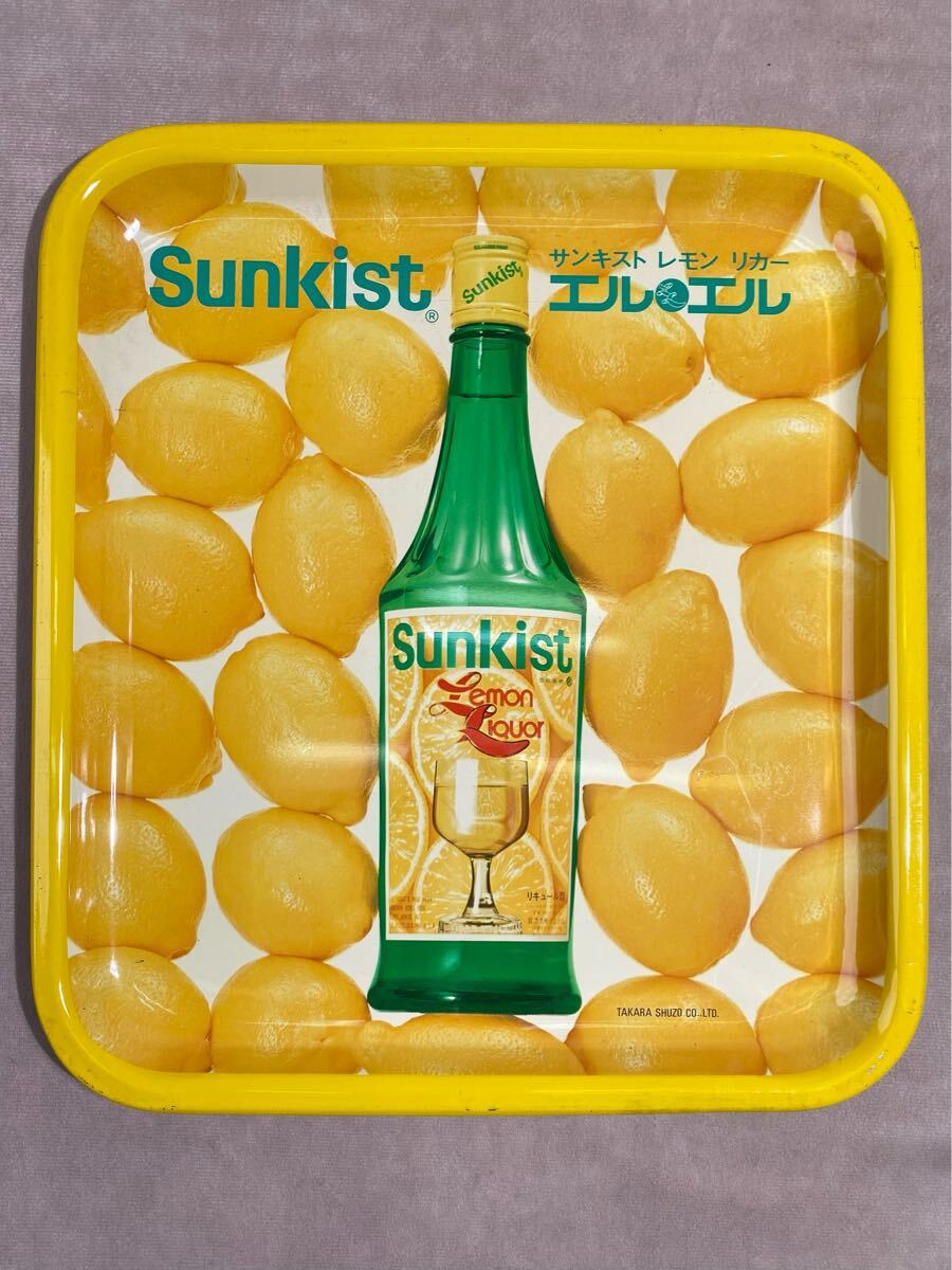 > 昭和レトロ Sunkist サンキスト レモンリカー 金属製 トレー 33cm×30cm ★ お盆 宝酒造 ビンテージ 当時物 リキュール 酒 アンティーク