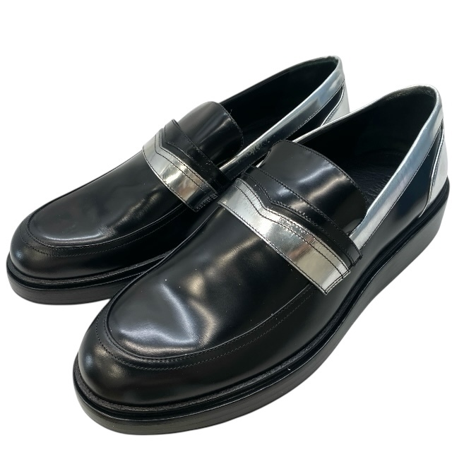 - JIMMY CHOO ジミーチュウ MITCH スリッポン ローファー シューズ メタリック シルバー ブラック レザー【サイズ40 1/2(25.5cm)】