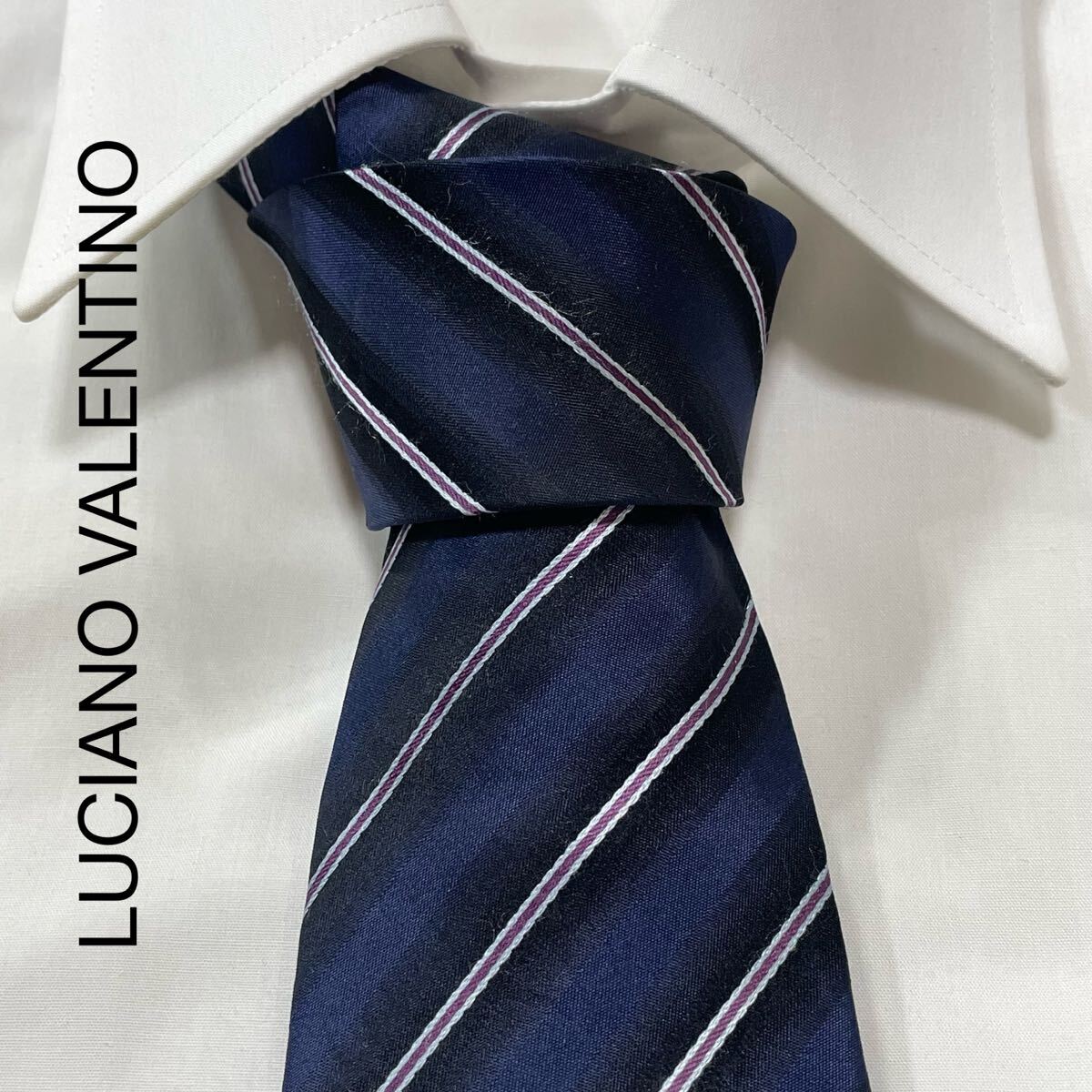 > LUCIANO VALENTINO ルチアーノバレンチノ レジメンタル ストライプ シルク ネクタイ ネイビー ライトブルー パープル TG2031