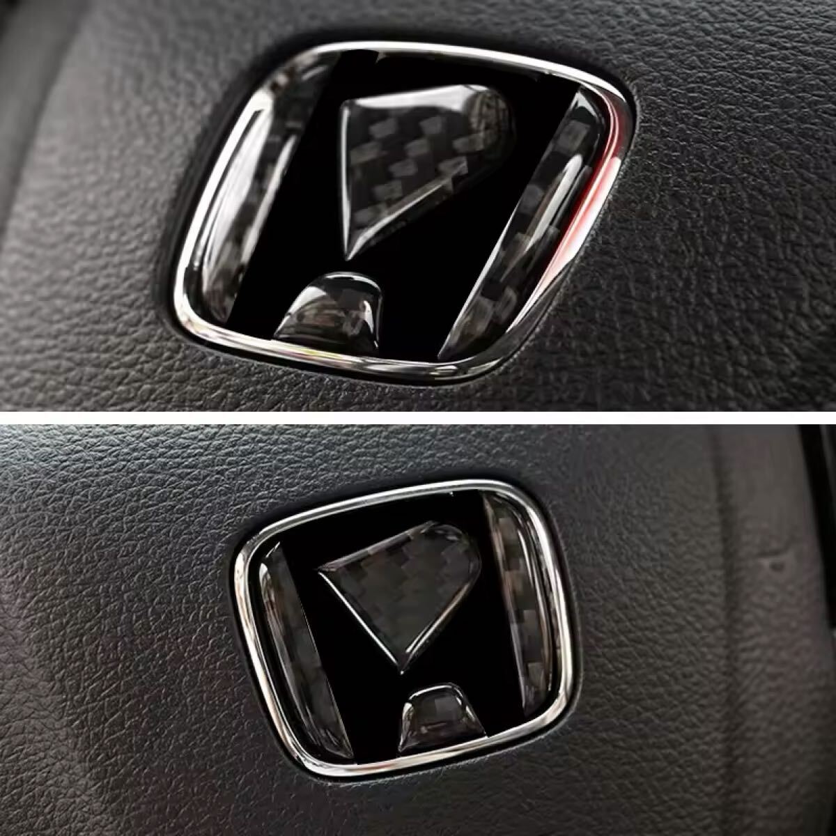 - ホンダ ステアリング エンブレムカバー カーボン調 内装 ドレスアップ カスタムパーツ N-BOX フィット ヴェゼル ステップワゴン対応