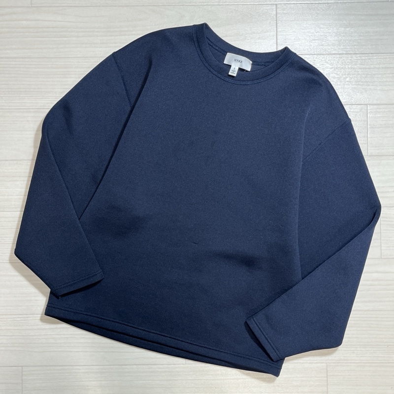 - HYKE/ハイク/ストレッチポンチ クルーネックスウェット/ネイビー/ワイドアームホール/ゆったりシルエット/プルオーバー