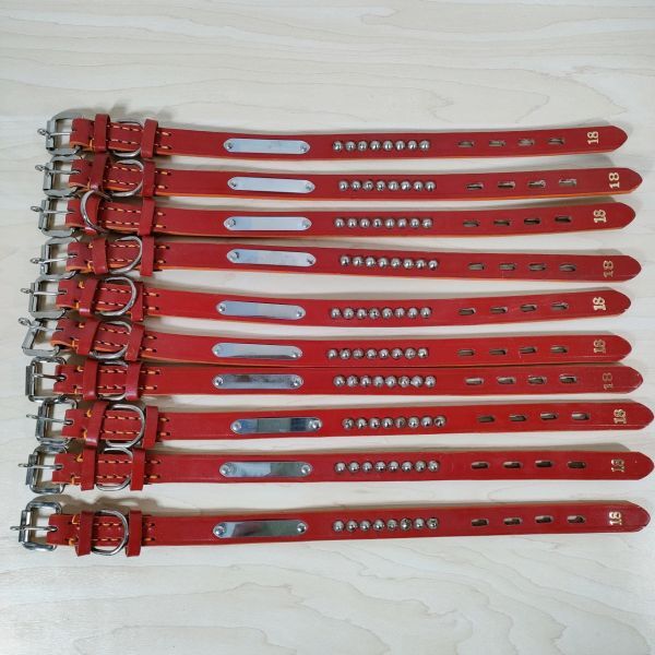 > ★一枚皮平首輪 #18 レッド 10個セット★小型犬用 首回り 約23~29cm 幅 約18mm 長さ 約38cm★未使用品 傷み有 牛皮革 赤色 ペット用品★