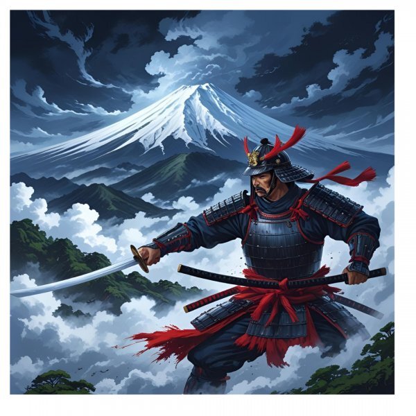 - ★富士山と侍 ステッカー 3枚入り Mount Fuzi & SAMURAI (Warrior) sticker3 pieces★北斎日本和風浮世絵武士お土産japantoursouvenir