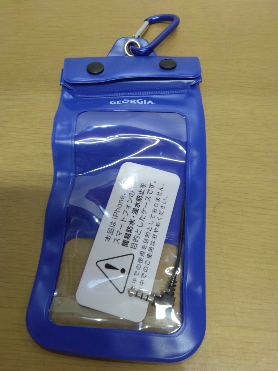 > GEORGIA ノベルティ スマートフォン 簡易防水ケース ブルー カラビナ イヤホンジャック付き 保管品