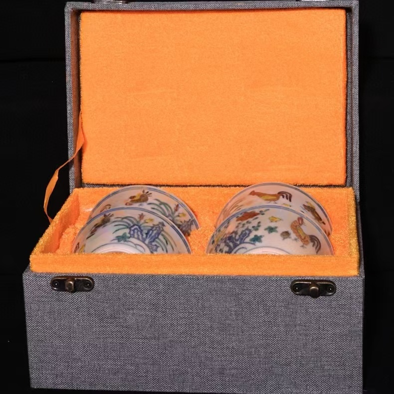 - 磁器 秘藏 明代成化年制金 赤いタイヤの闘彩ハリー光万字型四天王鶏甕杯一式 酒器 茶器 唐磁 染付 陶磁器 收蔵品 古美味 gu 時代物 古置物