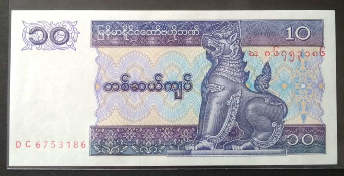 - ミャンマー・10チャット紙幣(1枚)【中古】
