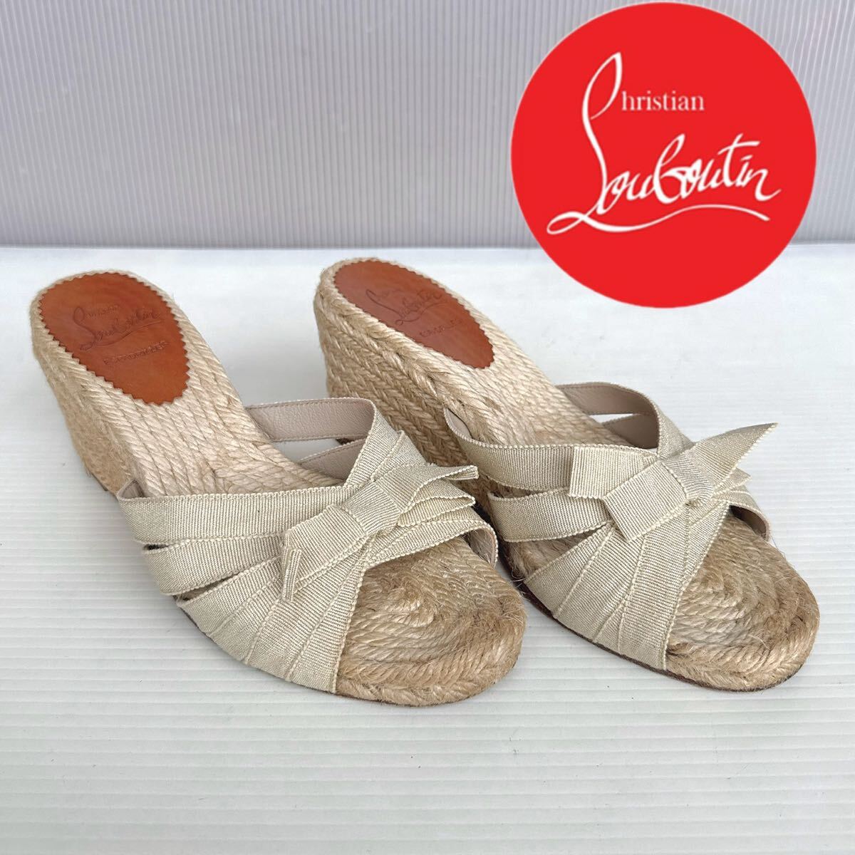 - Christian Louboutin クリスチャンルブタン ウェッジ 厚底 リボン エスパドリーユ サンダル ミュール 36 シューズ 靴 レーディス 美品