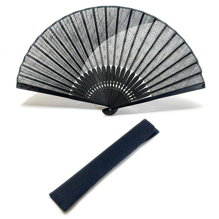 - 扇子セット 麻の葉グラデ グレー 夏のギフト 贈り物 夏小物 エコ 涼感グッズ 飛沫対策 綿生地扇子 竹扇子 扇子袋付