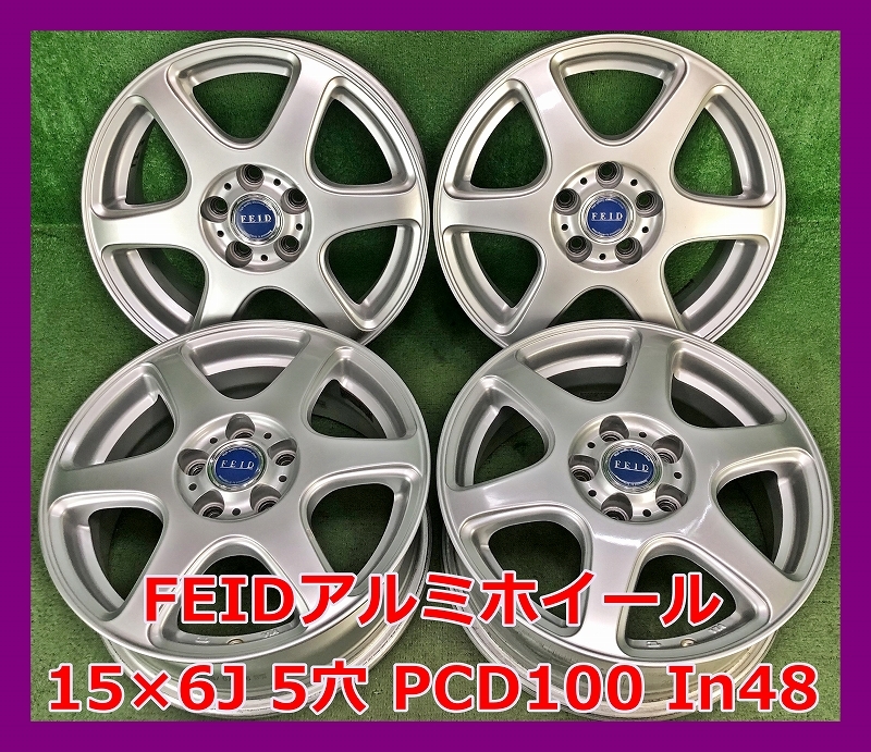 - ★15インチ FEID 中古 社外 アルミホイール 4本 5穴 PCD100 IN48★