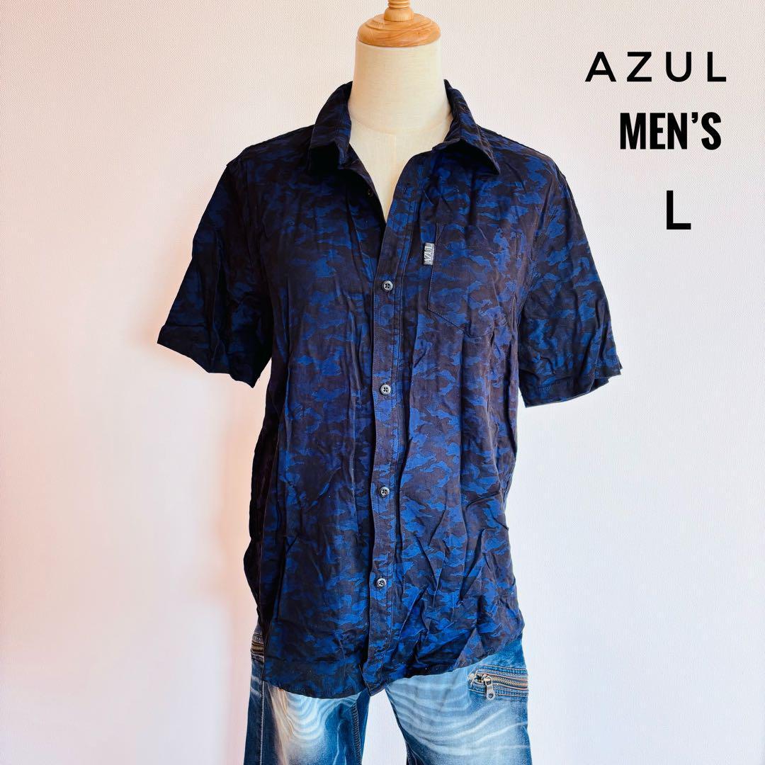 - AZUL アズール マウジー メンズ 迷彩 カモフラージュ 半袖シャツ L ブラック系