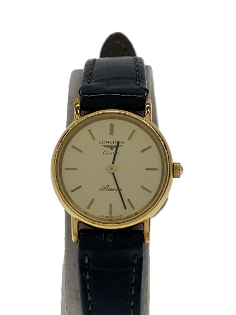 - LONGINES◆Presence/クォーツ腕時計/アナログ/レザー/GLD/BLK/社外ベルト