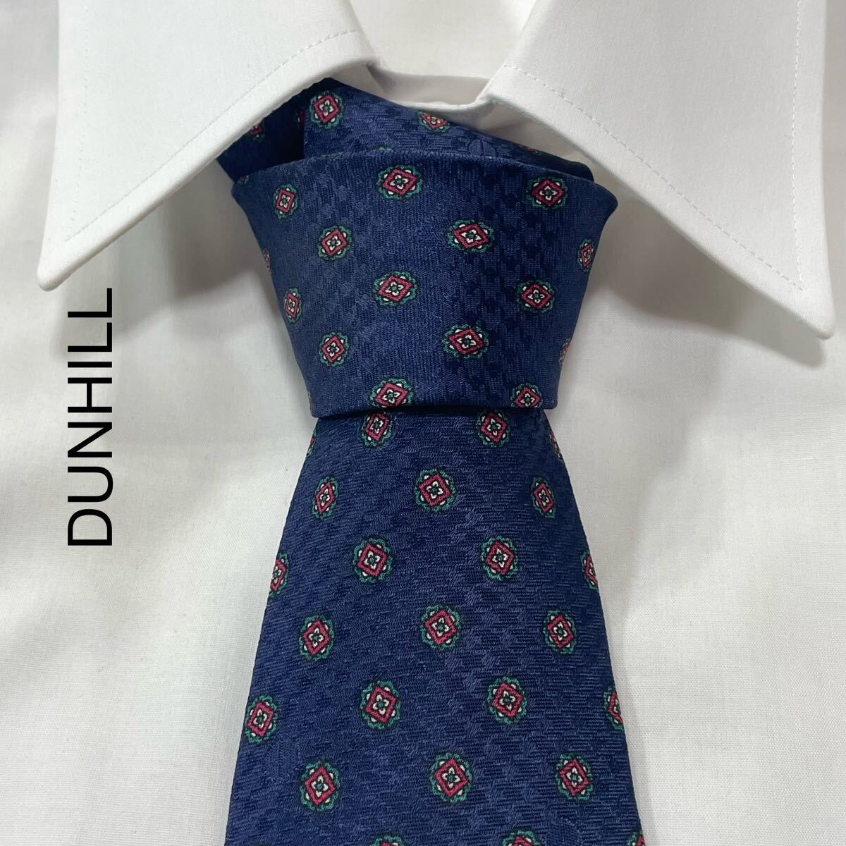 - DUNHILL ダンヒル パターン柄 シルク ネクタイ イタリア製 ネイビー TG2355