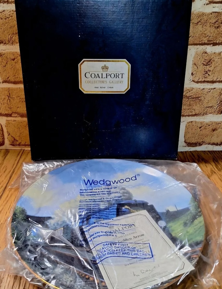 > 未使用!ウェッジウッド コールポート 絵皿 機関車 シリアルナンバー証明書付き!イギリス現地購入!プレートハンガー付き!