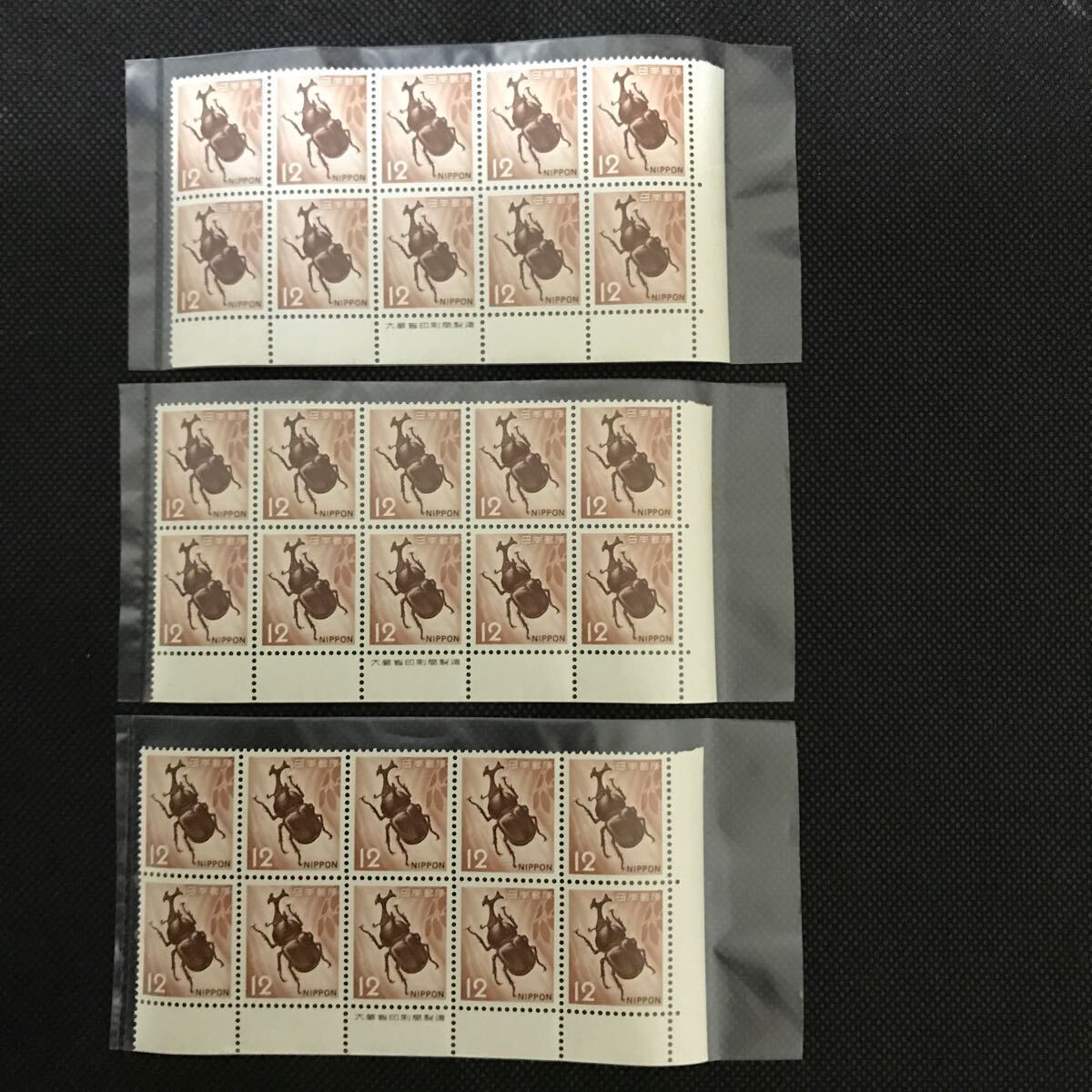- 切手 カブトムシ カブト虫 12円 10枚ブロック 銘版付き 3シート