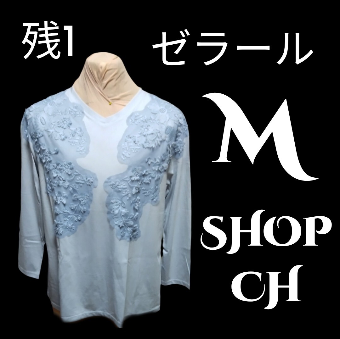 - ラスト1枚ゼラール花刺繍トップスM新品未使用サックスショップチャンネル