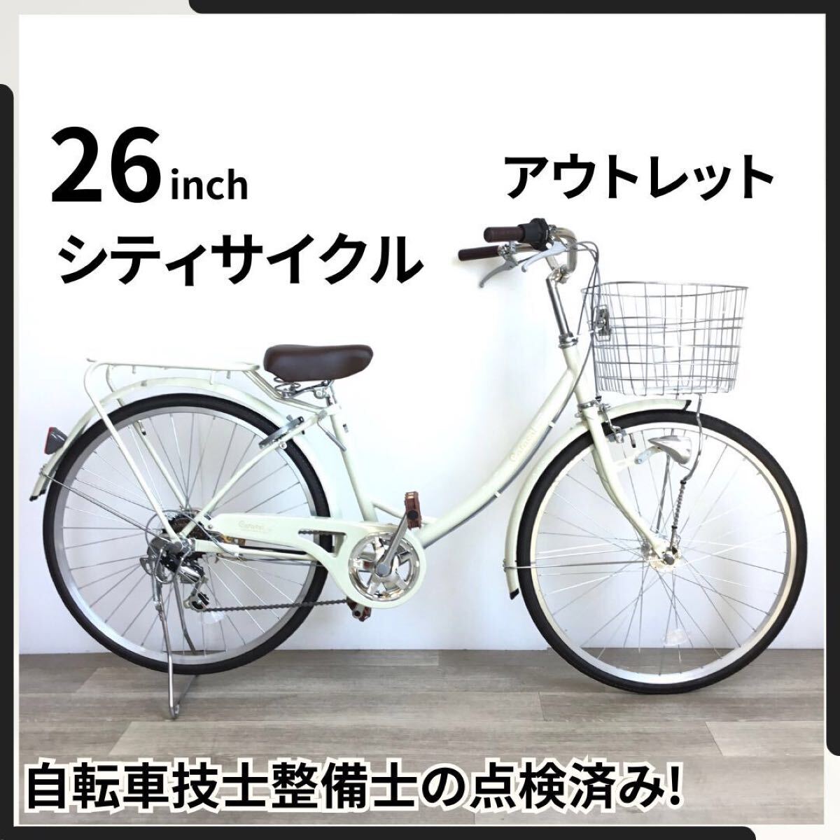 - 26インチ オートライト 6段ギア 自転車 (2771) クリーム ZX25007608 未使用品 ●