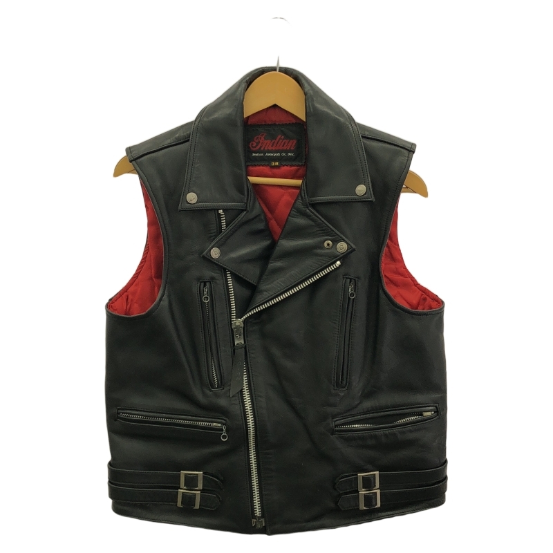 - 【中古】Indian Motorcycle レザーベスト サイズ38 ブラック/レッド インディアン モーターサイクル[240019495024]